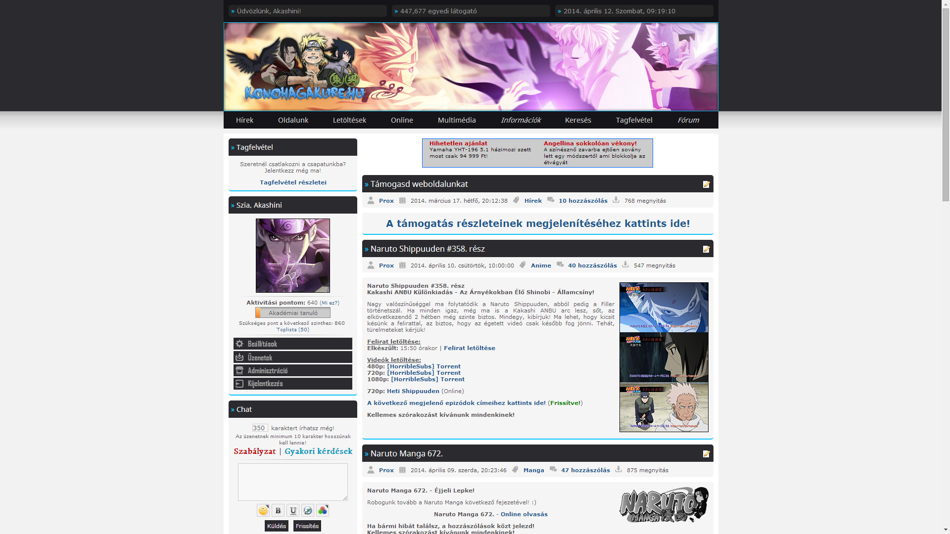 2014. június 14-én a statisztikáink és a visszajelzések hatására, beüzemeltünk egy Webshopot a rajongók számára, amiben Naruto témájú termékeket rendelhettek meg. Azonban egyéb okok miatt, pár héttel a nyitást követően, meg is kellett szüntetnünk, sajátunk és látogatóink bánatára… Később, 2016-ban egy szavazás keretein belül ismét előkerült a Webshop ötlete, viszont a pozitív visszajelzések ellenére sem valósítottuk meg végül.