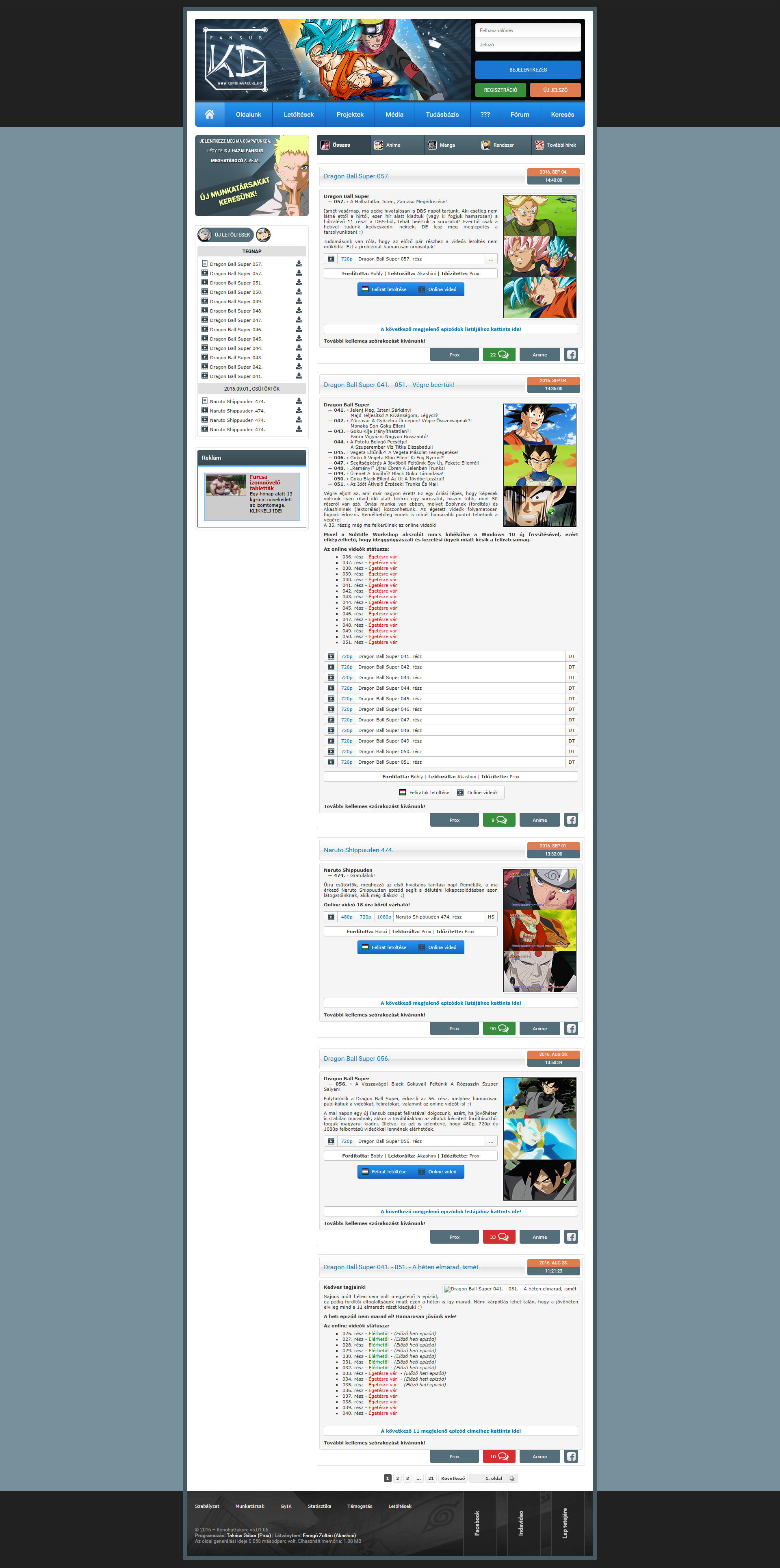 2016. június 25-én újabb projektet vettünk fel a fő projektünk, a Naruto Shippuuden mellé, mégpedig a Dragon Ball Super-t! Szerencsénkre még viszonylag időben született a gondolat, hogy elkezdjük az Animével kapcsolatos munkálatokat, ezért csak az első 51 epizódot kellett visszamenőlegesen pótolnunk. Emellett folyamatosan publikáltuk a hetente megjelenő epizódok magyar feliratait. A projekt sikere vetekedett a Naruto Shippuudenével, amely nekünk is meglepetéseket és külön örömet okozott.